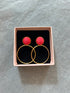 Les boucles d'oreilles CELESTE M sont composées d’un anneau doré et d'un cabochon serti de tissu.