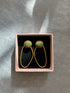 Les boucles d'oreilles ELIA sont composées d’une estampe dorée et d'un cabochon serti de tissu.