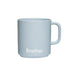 Tasse avec anse. La poignée n'est pas seulement élégante, elle est également confortable à tenir. La tasse est conçue en porcelaine émaillée ultra-mate de la plus haute qualité avec des lettres gravées au laser. Typographie de Arne Jacobsen. Un cadeau sûr pour les anniversaires, Noël, les diplômes, les mariages, les futurs grands-parents et les pendaisons de crémaillère.